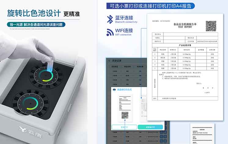 云唐科技主營業(yè)務是研發(fā)、生產:農藥殘留檢測儀、獸藥殘留檢測儀、食品安全檢測儀等快檢設備, 公司與全國各大高等院校和科研院所建立了良好的合作關系,大量引進高等科技成果,研發(fā)了眾多質量上乘,價格優(yōu)良的高科技產品。 多年來,公司研發(fā)生產了百余種食品檢測儀器和相關集成系統(tǒng)方案,產品銷往全國各地。公司擁有軟件產品設計和開發(fā)團隊,專注于具有自主核心技術和知識產權的軟件產品。